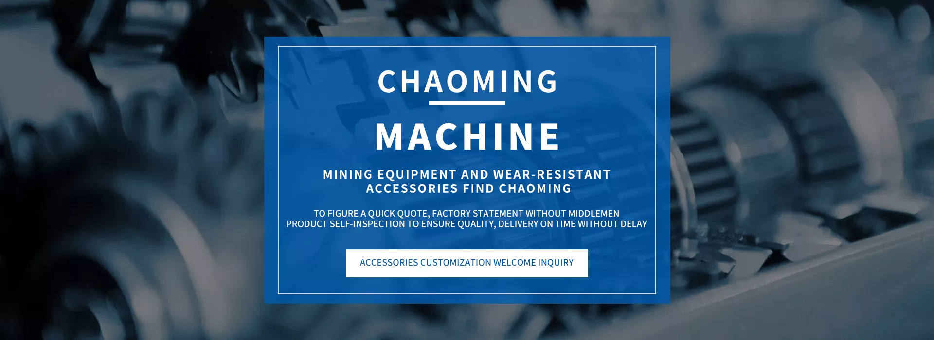 Fujian Chaoming Machinery Co., Ltd. is located in No. 130 Taqian Road, Jianyang District, Nanping City, Fujian Province, is a professional wholesale jaw crusher, cone crusher, impact crusher, vertical impact breaking (sand making machine), vibrating screen and other complete sets of equipment and wear-resistant accessories company.